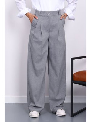 İmaj Butik Gri Palazzo Geniş Paça Pantolon
