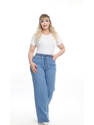 IŞŞIL İp Bağlamalı Lastikli Bel Büyük Beden Kot Pantolon Mavi