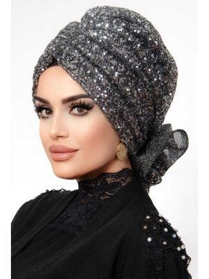AİŞE TESETTÜR Gümüş Payet Abiye Tokalı Bone