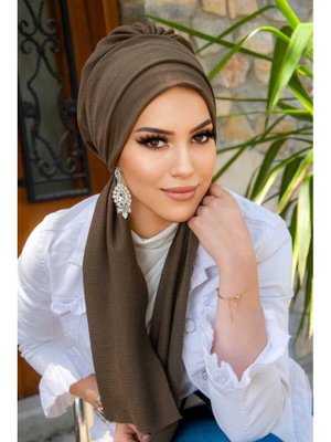 AİŞE TESETTÜR Açık Kahve Krınkıl Atkılı Bone