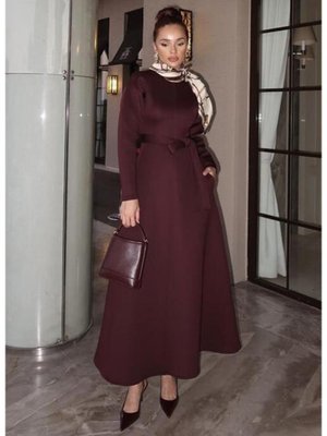 Podyumplus Bordo Puf Scuba Elbise