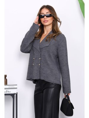 İmaj Butik Antrasit Kruvaze Yaka Düğmeli Triko Hırka