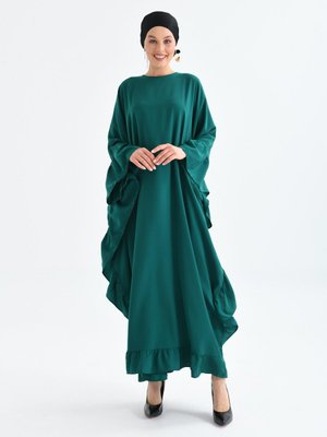Filizzade Zümrüt Yeşili Fırfırlı Ferace