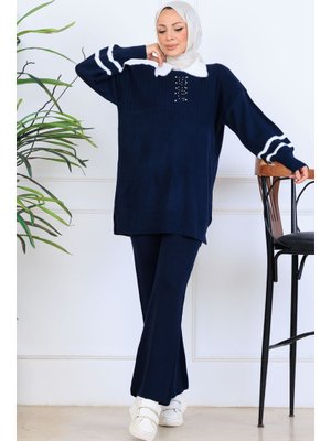 Benguen Lacivert Taş İşlemeli Triko Takım