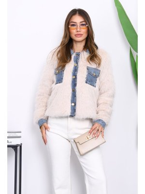 İmaj Butik Bej Kot Detaylı Cepli Kürk Ceket