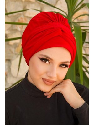 AİŞE TESETTÜR Kırmızı Burgu Detaylı Bone