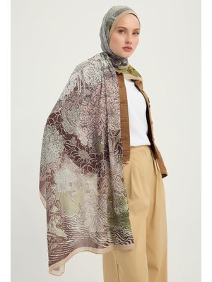 ŞALESS 70x190 Cm Sessiz Mevsimler Yeşil Kahve Efilia Desenli Şal