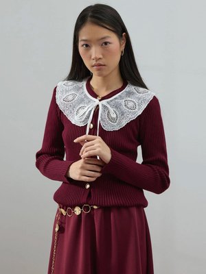 Ceylan Otantik Bordo Beyaz Yakalı Triko Hırka