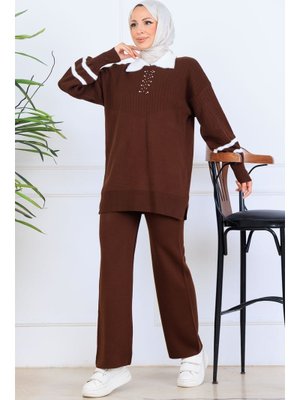 Benguen Kahverengi Taş İşlemeli Triko Takım