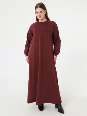 Alia Reglan Kollu Spor Büyük Beden Elbise Kızıl Kahve