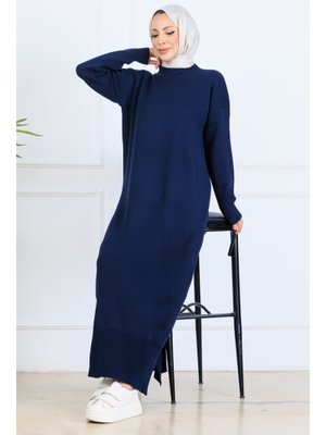 Benguen Lacivert Yırtmaç Detaylı Triko Elbise