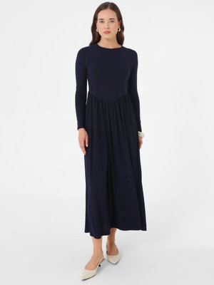 Refka Lacivert Sandy Kumaşlı Beli Korse Detaylı Elbise