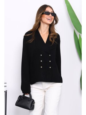 İmaj Butik Siyah Kruvaze Yaka Düğmeli Triko Hırka