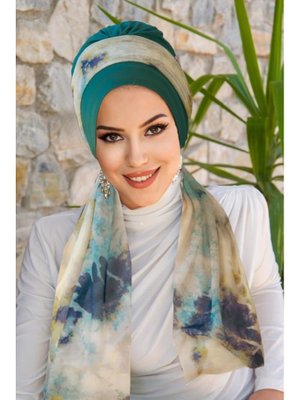 AİŞE TESETTÜR Zümrüt Turkuaz Batik Desen Fularlı Bone