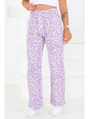 Tofisa Lila Desenli Beli Lastikli Bürümcük Pantolon