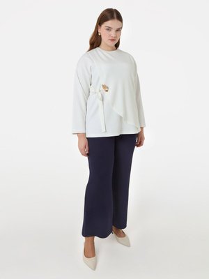 Alia Lacivert Yandan Bağlama Detaylı Bluz & Pantolon Büyük Beden Takım