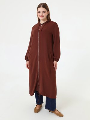 Alia Büyük Beden Kapüşonlu Fermuarlı Kap Aci Kahve