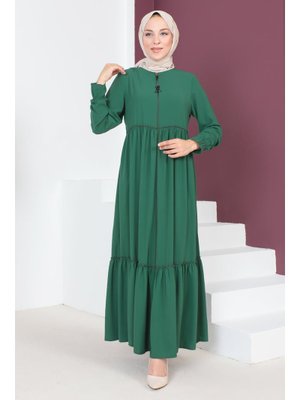 Tesettür Dünyası Yeşil Volanlı Ferace