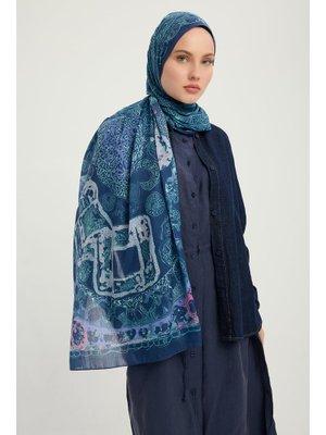 ŞALESS 70x190 Cm Sonsuz Aşk Lacivert Efilia Desenli Şal