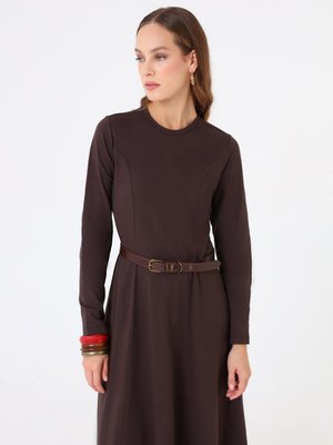 Refka Kahverengi Doğal Kumaşlı A Form Elbise