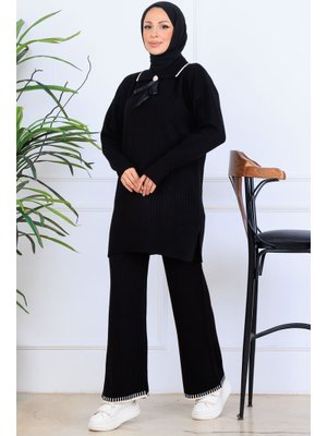 Benguen Siyah Yakası Kurdele Detay Triko Takım
