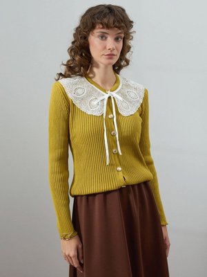Ceylan Otantik Yağ Yeşili Beyaz Yakalı Triko Hırka