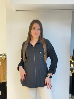 De White`s Siyah Büyük Beden Kollar Katlama Detaylı Gömlek