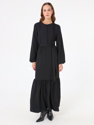 Refka Siyah Brit Düğmeli Nervür Detaylı Elbise