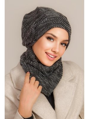 AİŞE TESETTÜR Siyah Melanj Bere Ve Etol Takım