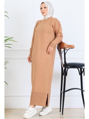 Benguen Vizon Yırtmaç Detaylı Triko Elbise