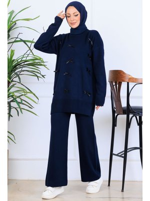 Benguen Lacivert Fiyonk Detaylı Triko Takım