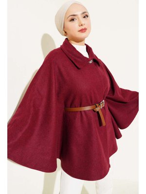 Volt Clothing Bordo Gömlek Yaka Kemerli Kaşe Panço