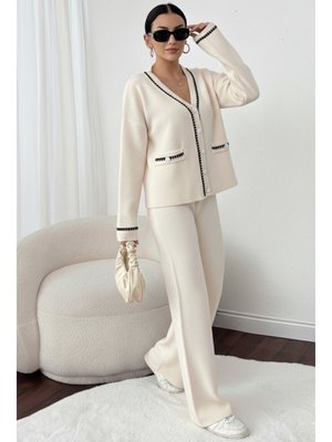 Benguen Taş Rengi Kesik Çizgili Ceket Takım