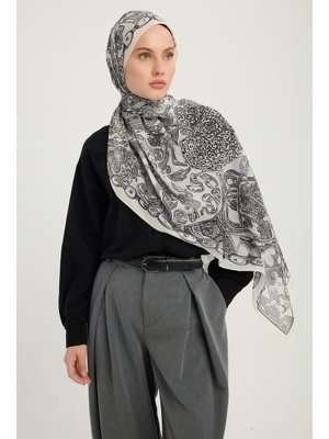 ŞALESS 70x190 Cm Sonsuz Aşk Gri Efilia Desenli Şal