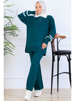 Benguen Zümrüt Yeşili Taş İşlemeli Triko Takım