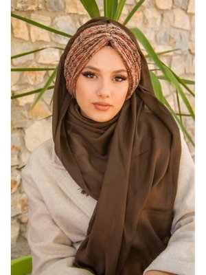 AİŞE TESETTÜR Kahve Taba Desenli Kışlık Hazır Şal