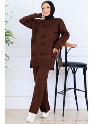 Benguen Kahverengi Fiyonk Detaylı Triko Takım