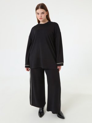 Alia Siyah Yumuşak Tuşeli Kontras Detaylı Tunik & Pantolon Büyük Beden Takım