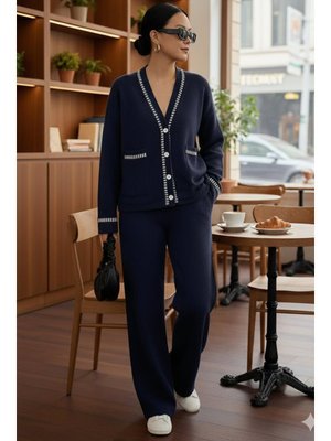 Benguen Lacivert Kesik Çizgili Ceket Takım
