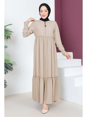 Tesettür Dünyası Bej Volanlı Ferace