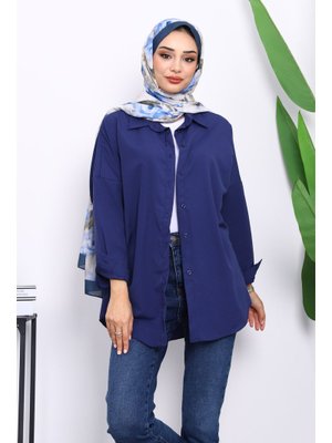 İmaj Butik Lacivert Düğmeli Salaş Terikoton Gömlek