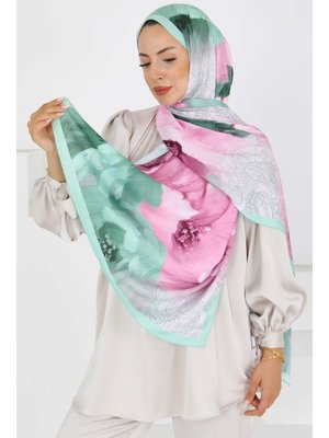 Tofisa Açık Haki Kıraş Büyük Çiçek Desenli Şal Açik