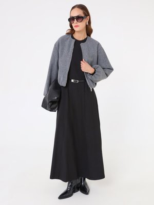 Refka Gri Balon Kollu Fermuarlı Kısa Kaban