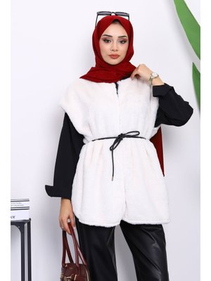 İmaj Butik Krem Cepli Peluş Kürk Yelek