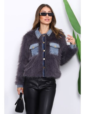 İmaj Butik Füme Kot Detaylı Cepli Kürk Ceket