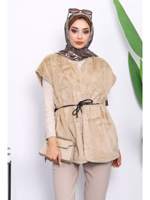 İmaj Butik Vizon Cepli Peluş Kürk Yelek