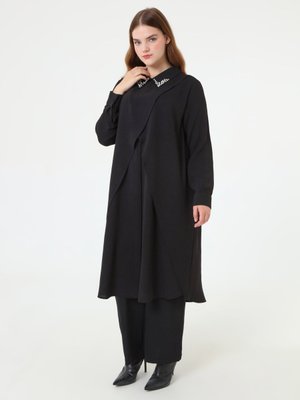 Alia Siyah Yakası Taş Detaylı Uzun Büyük Beden Tunik