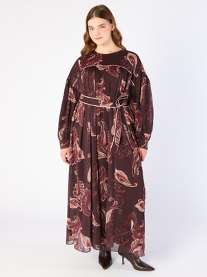 Alia Bordo Soyut Desenli Roba Detaylı Şifon Elbise