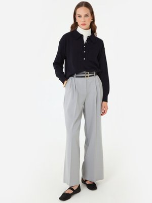 Refka Gri Çift Kemerli Palazzo Kalıp Dokuma Pantolon