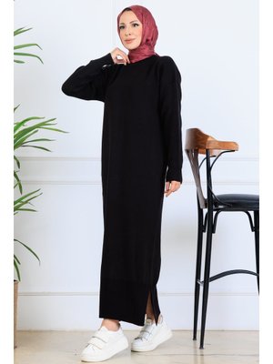 Benguen Siyah Yırtmaç Detaylı Triko Elbise